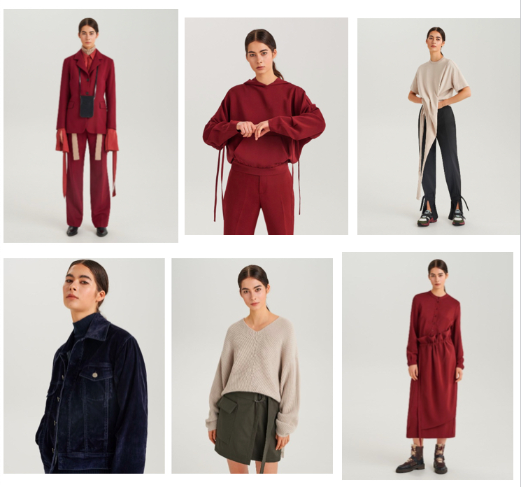 Od niektórych projektów Re.Design nie można odwrócić wzroku – tak jest w przypadku damskiego garnituru, spodni i żakietu w kolorze malinowej czerwieni. W swojej szafie równie chętnie widzielibyśmy buzę z kapturem i dużą kieszenią z przodu, czy czerwoną sukienkę midi zdobioną falbaną w pasie. Must have’m jest zdecydowanie welurowa kurtka z kieszeniami na piersiach, zapinana na guziki – dokładnie taka, jaką nosiliśmy z dumą w latach ’90, beżowy sweter z wełną i spódnica o asymetrycznym kroju z dużą kieszenią, zapinana na pasek.