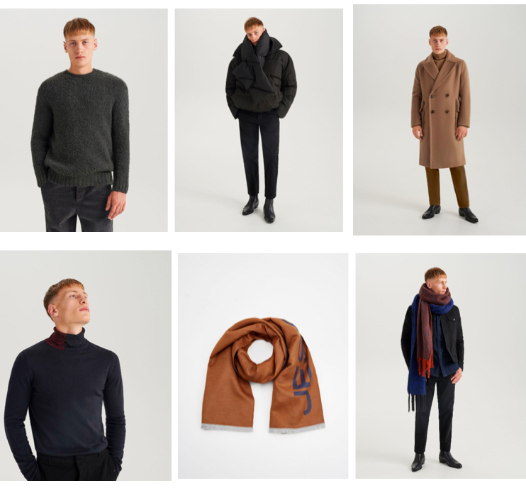 Beżowy płaszcz z dużymi kieszeniami, szary sweter, dżinsowa koszula, czy golf z ozdobnym, dwukolorowym kołnierzem – to nasz wybór dla panów. Plus piękne szalki, które są tak grube i obszerne, że można się w nich schować przed najsroższym mrozem. Szaliki te sprawdzą się równie dobrze owinięte wokół kobiecej szyi, co męskiej. Podobnie uniwersalna jest beżowa bluza z napisem „jesień/zima 2018”.
