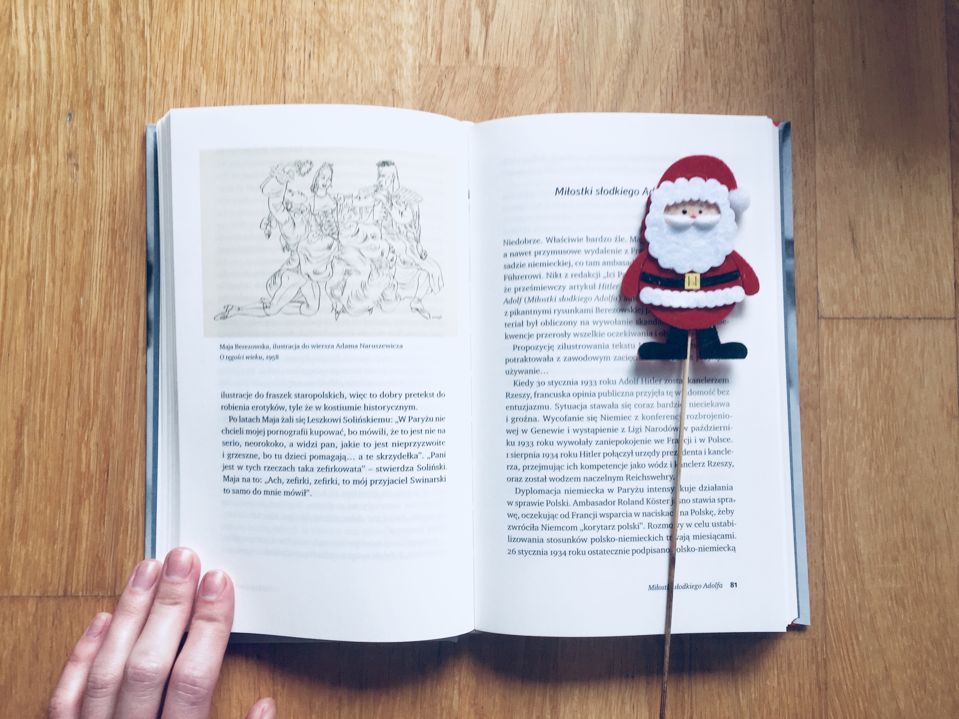Rozmawiając, śmialiśmy się z akcji „Nie czytasz, nie idę z tobą do łóżka”. Zastanawialiśmy się czy oprócz tego, że była popularna i wszyscy chętnie ją udostępniali, to czy przyczyniła się do tego, że choć kilka osób więcej przeczytało stojące na ich półkach książki. Z regału zawalonego książkami wybieraliśmy te, które można przeczytać w stosunkowo najkrótszym czasie, tak żeby nie czekać na nagrodę zbyt długo i żeby motywacja była silniejsza. Jeśli skusiła się na tę zabawę choć jedna nieczytająca osoba, to akcja miała sens. Czy nie uważacie, że może być równie dobrą prowokacją na święta: nie czytasz, nie zjesz piernika albo nie czytasz, nie ubierasz choinki. Oczywiście prowokacją w formie zabawy, nie namawiam do tego, żeby komuś, kto nie czyta książek wyrywać piernik z ust, w końcu mamy Święta. Niech zatem będą świąteczne, pełne miłości, piernika, zapachu choinki i świeżego druku.
