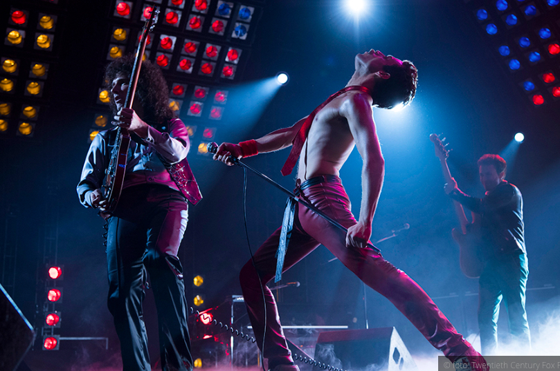Kadr z filmu Bohemian Rapsody/ Remi Malek na scenie – ogień!