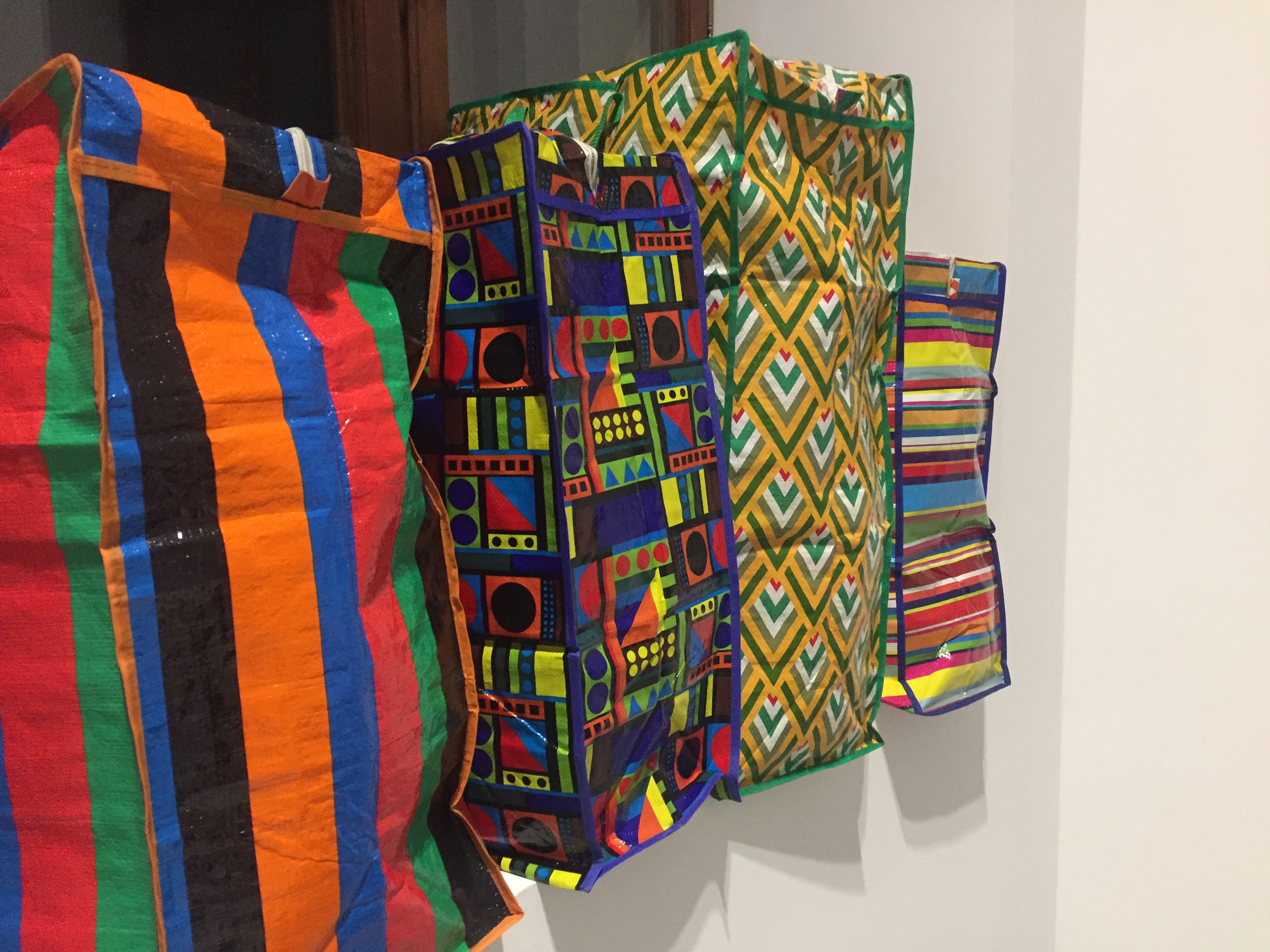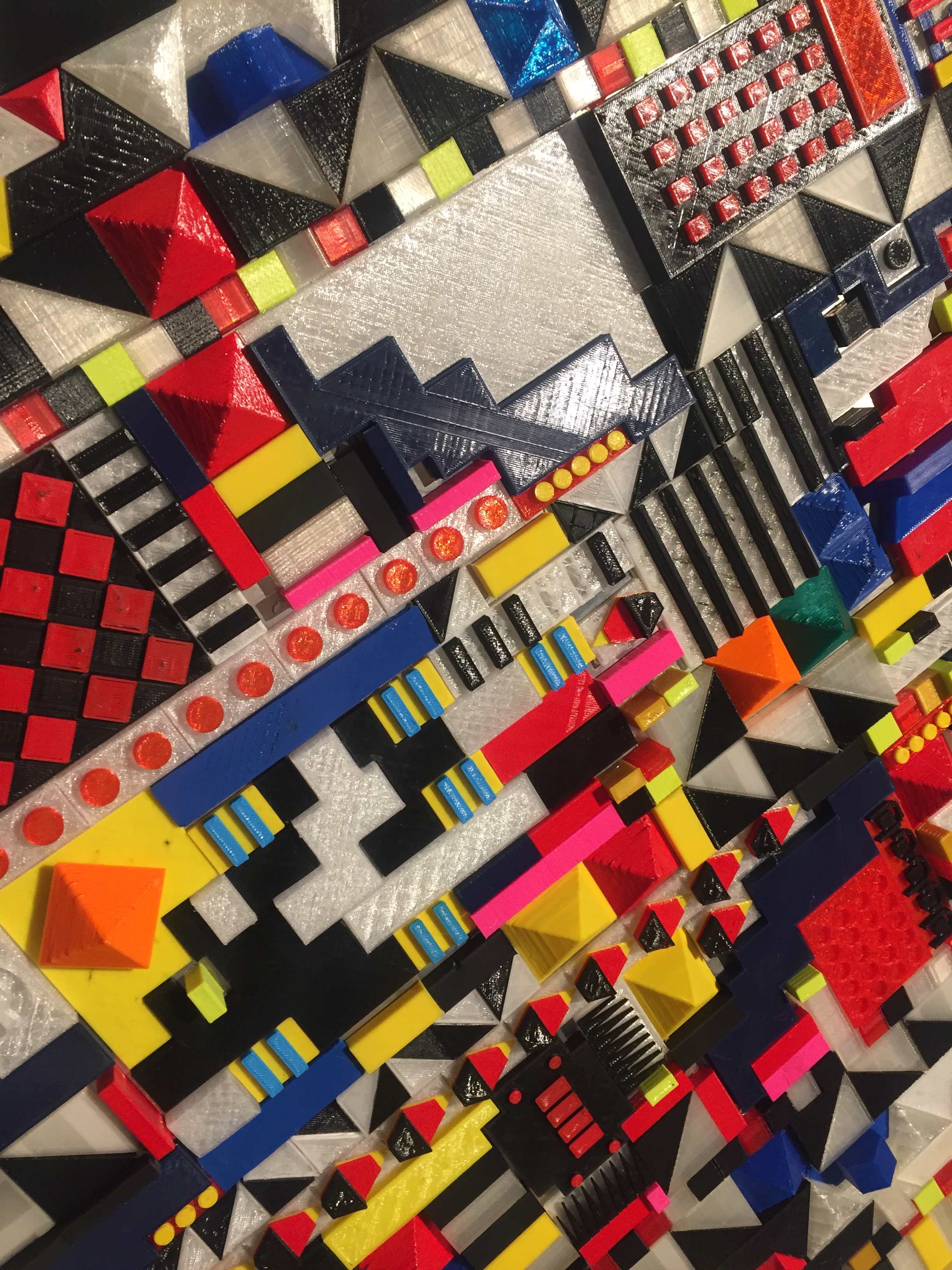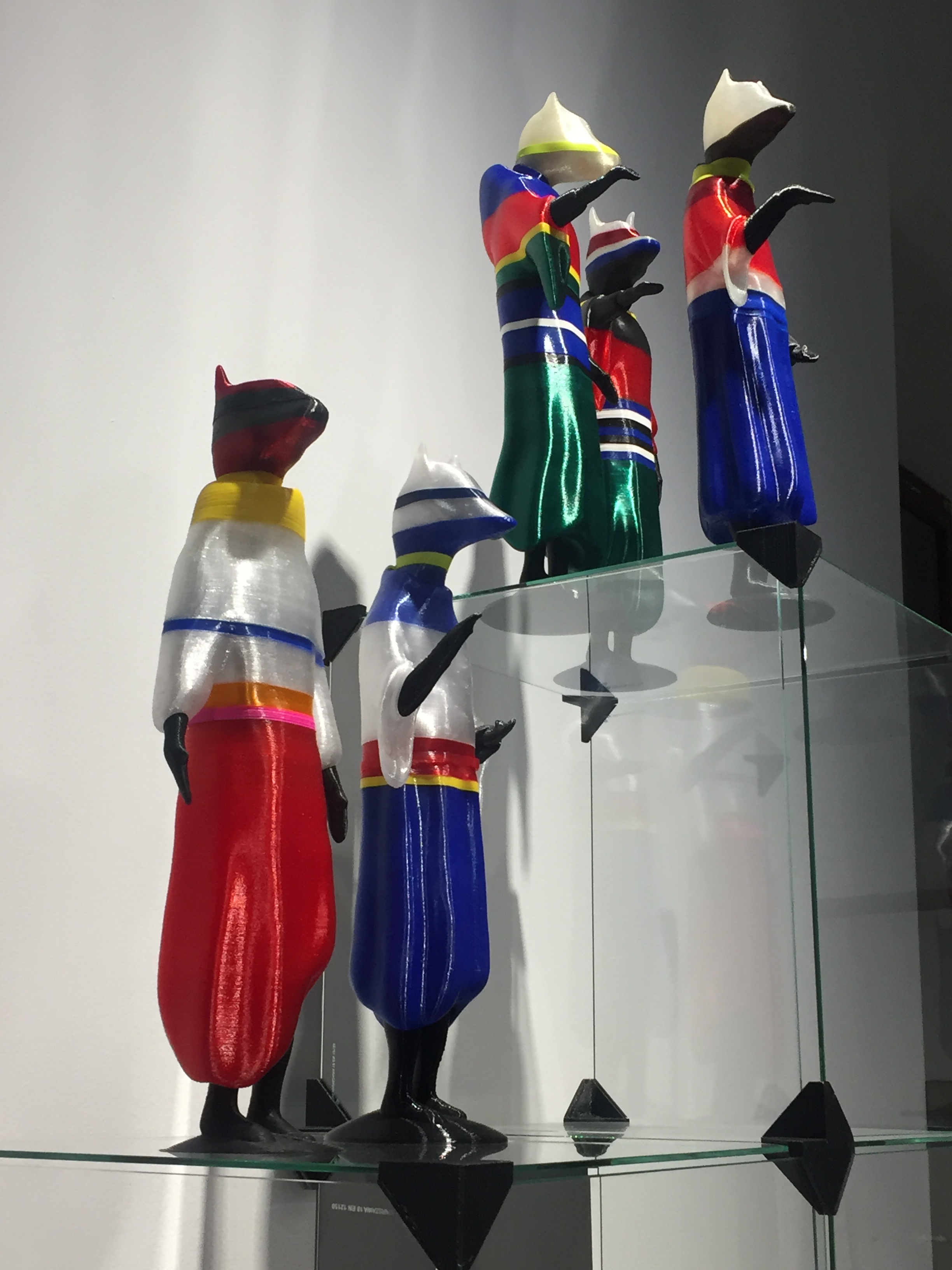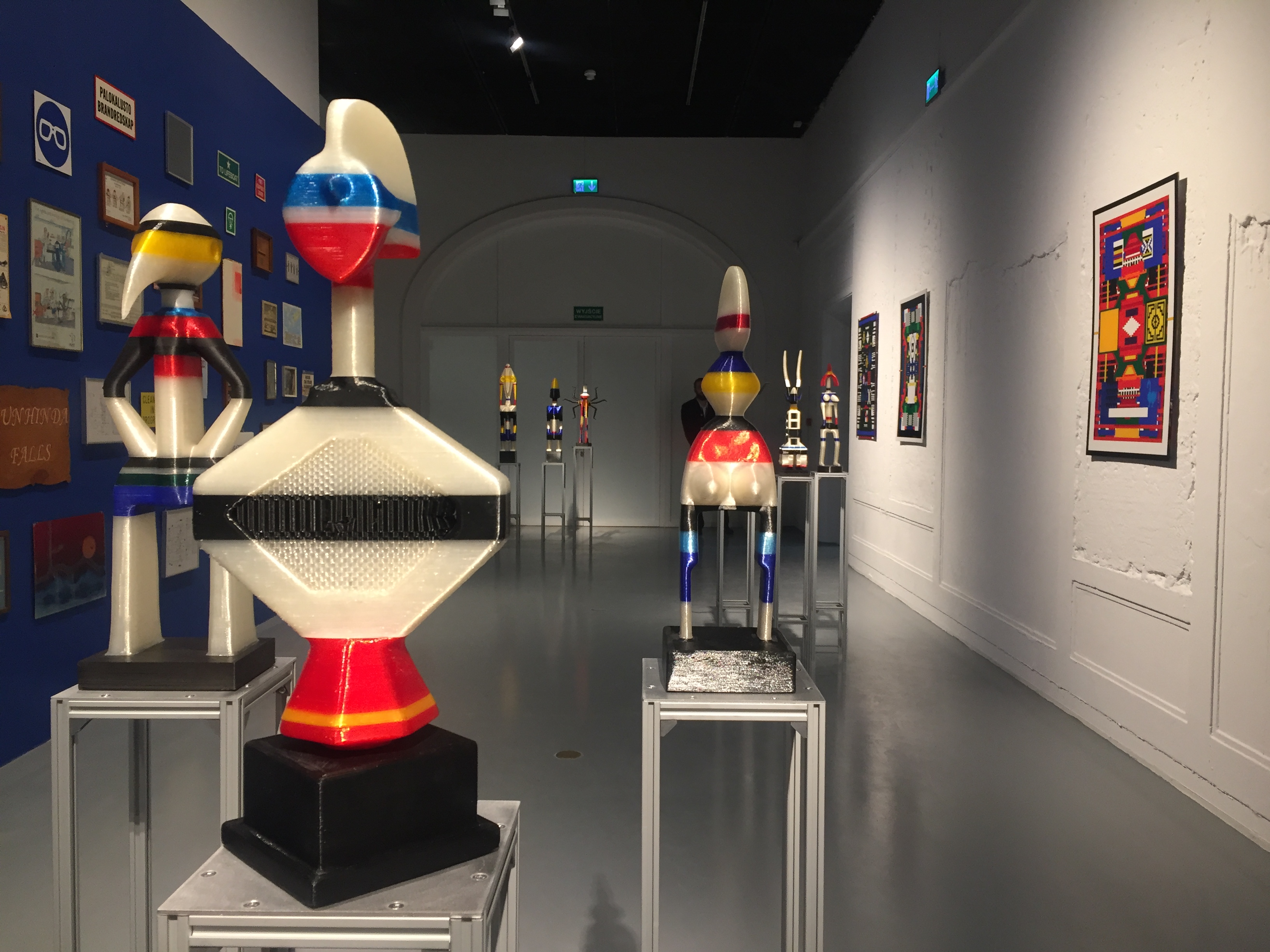 Kolorowe figurki i plansze, które otwierają tę wystawę to swoisty zlepek, nie tylko znaczeń. Jan Siomon wygenerował je za pomocą stworzonego przez siebie algorytmu z motywów łączących Afrykę, Amerykę Południową, Europę i Polskę. Są jak talizmany chroniące świat przed homogenizacją, bo Jan, jak zakładam, w swoich pracach udowadnia, że możemy żyć, funkcjonować i rozwijać się tylko dzięki wymianie kulturowej. A dziś wymiana kulturowa wiąże się również z użyciem szeroko pojętej technologii. Jan Simon jako artysta łączy więc zapędy socjologa i badacza rzeczywistości, i przetwarza je wykorzystując kody informatyczne (które hakuje, podobnie jak zdjęcia), bo jak twierdzi jest „komputerowym freakiem”. Kocha drukarki 3d, które w Ujazdowskim drukują nadgryzione kawałki fioletowego sera i kalkulatory które są tak błędne, że nie można na nich nic wyliczyć. Nie przeszkodziło to artyście w wybudowaniu stelarzu domu – tak krzywego, dzięki wyliczeniom „błędnego kalkulatora”, że wygląda na budowlę stworzoną na podstawie wyliczeń pięciolatka. W domu tym można spokojnie siąść i pokontemplować, bo jest również co.