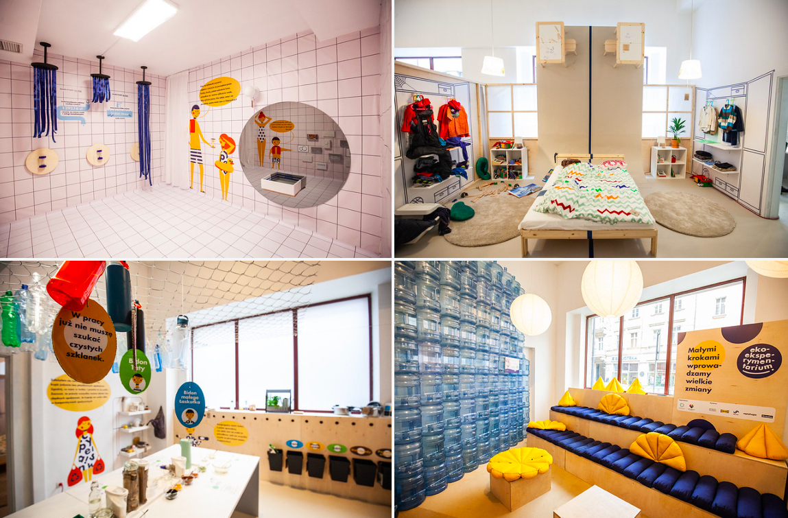 Ciekawymi założeniami, zarówno do oglądania jak i wspólnej zabawy są „Miłosne reżimy” przygotowane przez Adi’ego Zaffran i Bine Roth oraz Ekoeksperymentarium, które jest projektem edukacyjnym. Goście ekomieszkania w sypialni sprawdzą w praktyce zasadę “mniej znaczy więcej” – czy mniej przedmiotów, to więcej czasu dla rodziny i mniejsze zużycie zasobów planety? W łazience spróbują wykorzystać rozsądnie każdą kroplę wody i przekonają się ile wody marnuje się podczas długiego prysznica. W kuchni spróbują wdrożyć zasady Zero Waste podczas gotowania i posegregować śmieci z głową.
