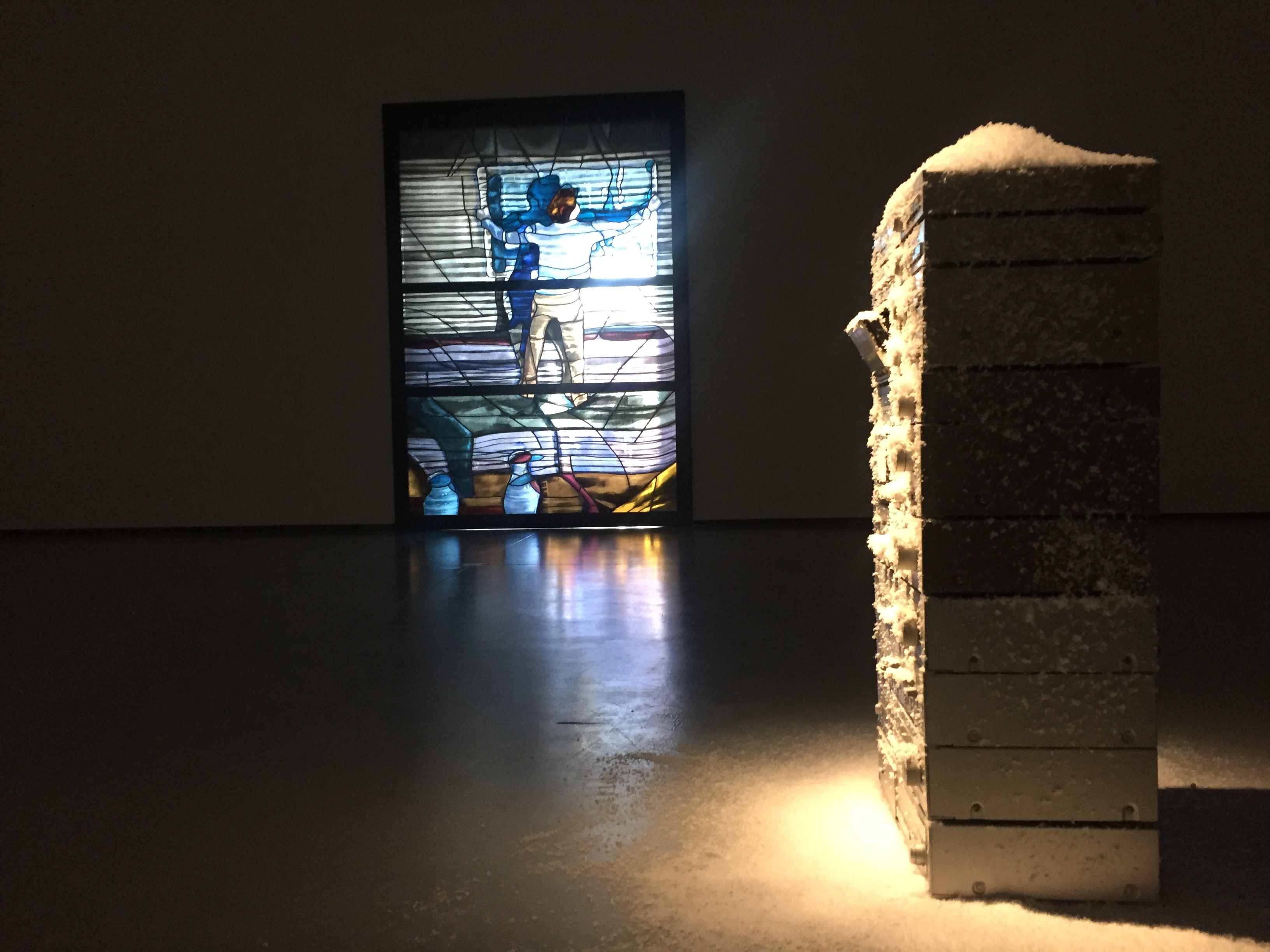 Głównym tropem wystawy wydają się nawiązania do „Amerykańskiego żigolo”, gdzie artystkę urzekła nie tylko historia, ale też scenografia, beżowe dywany i światła od żaluzji według Lobody sprawiają, że jest to bardzo seksowny film. Tę kolorystykę przeniosła na witraż przedstawiający głównego bohatera – Juliana, który nerwowo przetrząsa swój apartament w poszukiwaniu kompromitujących go dowodów.