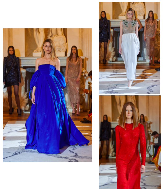 Wieczorowe kreacje to delikatny błysk cekinów, koronkowe wykończenia, kwiaty wycinane laserowo, hafty. Przepiękne i bogate tkaniny, których wielbicielem jest projektant są istotnym elementem budowania kolekcji. Suknie z kolekcji „Mojo” odszyte są jedwabiu, żakardów, satyny, muślinu, czy szlachetnej wełny.