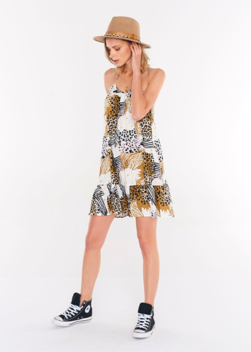 Na sportowo! Luźna mini na cieniutkich ramiączkach świetnie sprawdzi się na wakacjach. No i ten wzór. Nie można od niej oczu oderwać.
