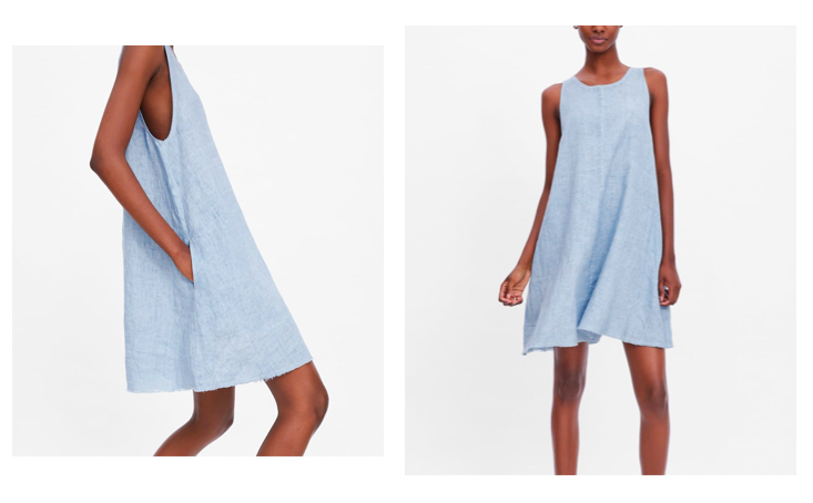 Prosta, krótka sukienka bez rękawków. Wygląda lekko i bardzo kobieco. Plus za kolor! Żeby wykorzystać ją również do pracy wystarczy ubrać pod spód biały t-shirt.