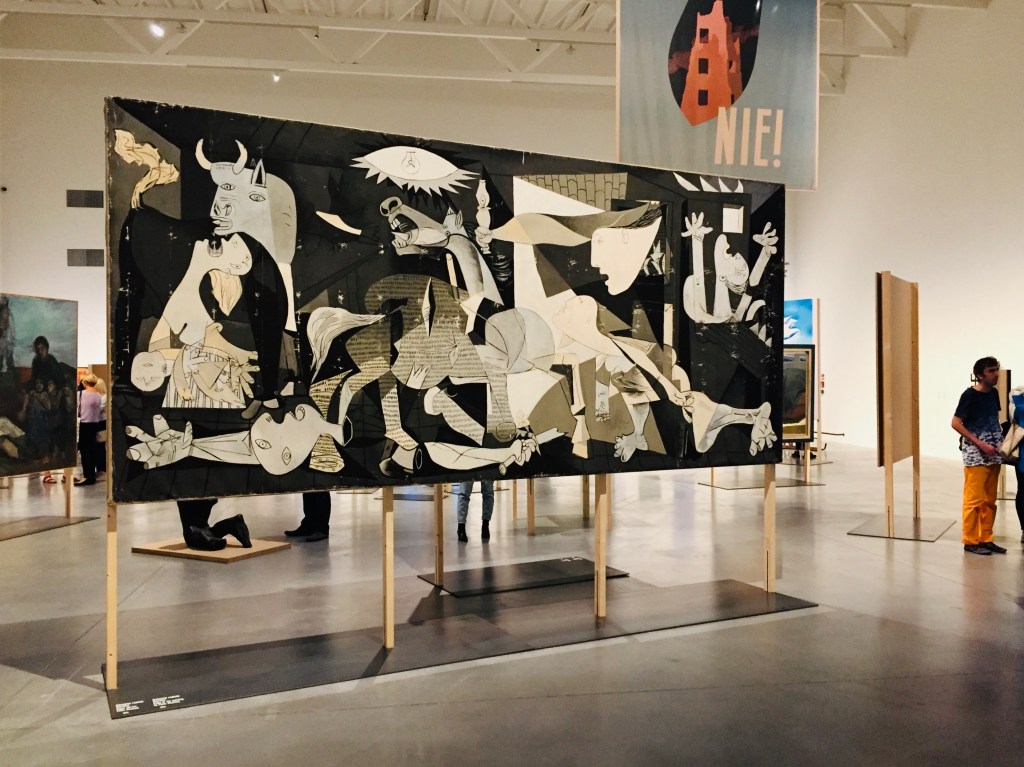 Na wystawie uwzględniono trzy historyczne momenty. Pierwszy z nich to lata ’30 XX wieku i doświadczenie wojny i przemocy. Moment malowania Guerniki jest wizjonerski, ona nadaje ton całej wystawie i pozostaje obrazem uniwersalnym ukazującym przemoc i dramat.