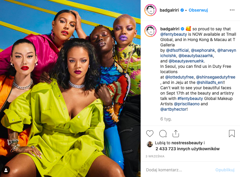 Riri wspiera swoją markę promocją na kanałach społecznościowych. Nie tylko pokazuje się w swoich ubraniach, ale równie chętnie prezentuje nowości kosmetyczne. Pod tymi postami oprócz ton zachwytu – możecie nie uwierzyć, ale faktem jest, że te kilkanaście odcieni się sprzedaje; są komentarze w których niezadowoleni fani piosenkarki odsyłają ją do studia nagrań. Riri zgrabnie unika tematu, albo jeśli jest pod ścianą i musi coś powiedzieć, to najczęściej pada: „pracuję nad tym, jestem na etapie tworzenia”. Ale na jej twarzy jest niewyraźny grymas, który można dostrzec pod warunkiem że Rihanna nie zasłania się rękoma. „Tu mnie mają moi fani. Jest mi trochę wstyd, bo wiem że oni czekają”.