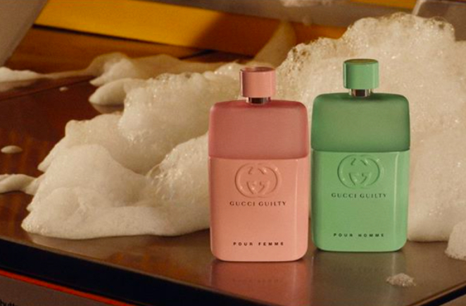 Gucci Guilty to bardzo rozbudowany zapach orientalno – kwiatowo – owocowy. W wersji dla niej głównymi nutami zapachowymi są akordy paczuli w nucie głowy, narcyz który stanowi serce i piżmo, które ujawnia jego głębię. Dodatkowo wyczujecie świeży zapach bergamotki, grejpfruta, maliny, wzbogacone kwiatowym akcentem w postaci fiołka i jaśminu. Orientalną bazę stanowią nuty piżma, paczuli, ambry i szypru.