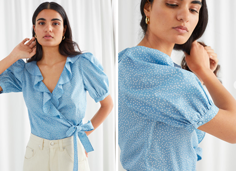 Piękna, błękitna koszulka zdobiona romantycznymi falbankami będzie idealnie pasować do mum jeans. Duet idealny, bo bluzka taka ozdobna, a spodnie proste i ciut luźne. Do tego klapeczki i można wybrać się na rower w miłym towarzystwie.