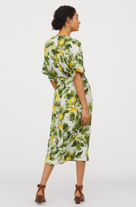Prosta sukienka wiązana w pasie i w cytrynowy wzór będzie idealna na cieplejsze dni. Mnie podoba się wzór, bo kojarzy się z letnią lemoniadą, słodko – kwaśną pitą w promieniach słońca, które grzeje ciut za mocno.
