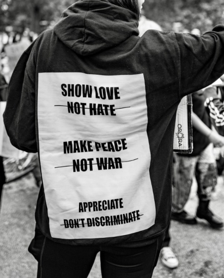 SHOW LOVE NOT HATE/ MAKE PEACE NOT WAR/ APPRECIATE DON’T DISCRIMINATE