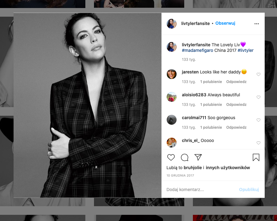 Aktorka ma fantastyczną skórę, ale jak przyznaje to zasługa jej rodziny. To jej babcia nauczyła ją, że nawilżanie jest bardzo ważne, tak samo jak peelingowanie naskórka. Jej tato, muzyk – Steven Tyler również jest kosmetycznym fraeakiem i zupełnie nie wygląda na swoje lata. Liv prócz gotowych produktów, stawia na sen i dobre nawodnienie organizmu.