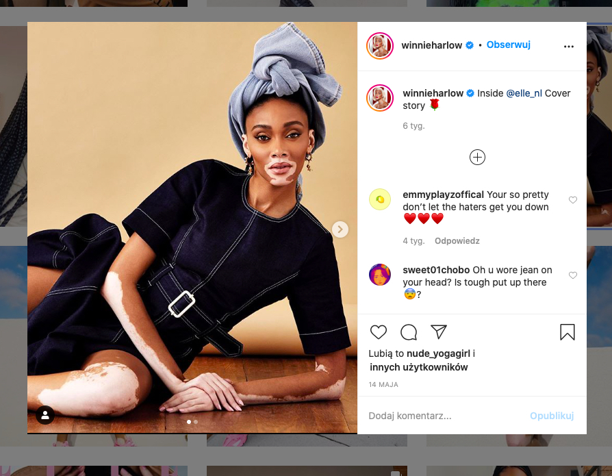 Modelka i aktywistka – działa na rzecz osób, których dotknęło bielactwo. Sama jest osobą, która nie raz spotkała się z krytyką przez to, że jej skóra jest naznaczona białymi plamami, które są wynikiem niskiej pigmentacji. Jako modelka szczególną wagę przywiązuje do dbania o stan swojej skóry.
