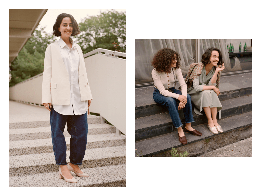 Na zdjęciach pozują Warszawianki. Na ich stopach możemy zobaczyć modele butów, które już znamy, ale także nowości. Kemet to baleriny uszyte z miękkiej, włoskiej skóry, wykończone ściągaczem, dzięki czemu ładnie układają się na stopie. Kesher to klapki z ozdobną klamrą. Idealne na lato, do sukienek i szortów, na spacery po słonecznym mieście. Migdal to czółenka w duchu new-vintage. Pierwsze chodaki Balaganu to buty Etz – na drewnianej koturnie, z delikatnymi skórzanymi paskami. Lniane sandałki z zakrytymi palcami i paskiem na pięcie to lekkie Gumi.