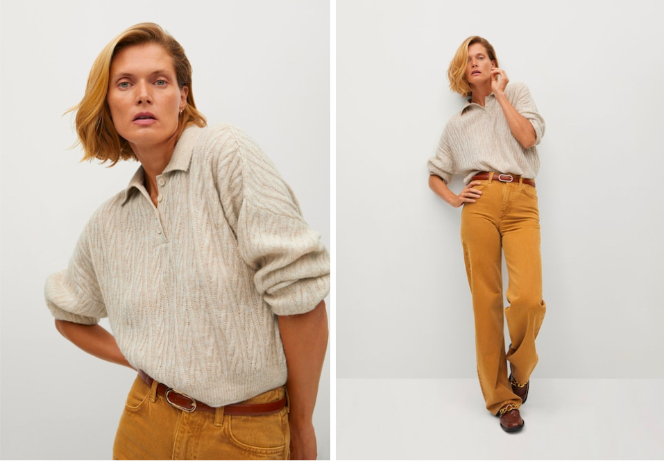 7/ Mango/ sweter w wersji retro przypominający konstrukcyjnie polówkę męską, idealny dla fanek męskiego stylu