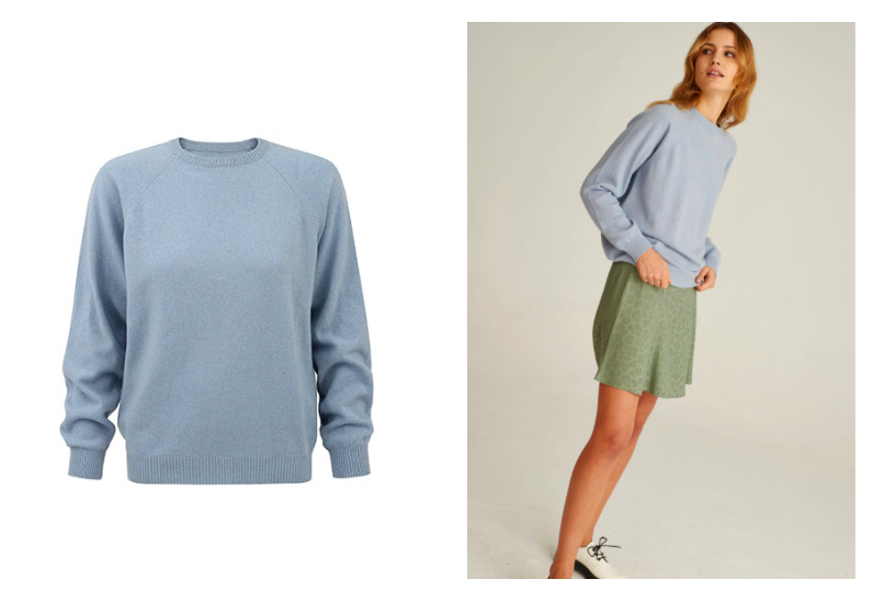 5/ Sweter Nago/ błękitny sweter od Nago jest delikatny w dotyku i ma przepiękny błękitny kolor, zestawiony z zielonymi spodenkami przypomina o letnich dniach
