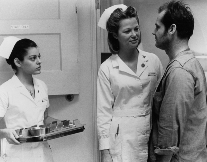 Ta powieść to zderzenie dwóch osobowości – siostry Ratched i McMurphy’ego, który trafia pod jej opiekę. W pierwszej adaptacji nakręconej przez Miloša Formana. McMurphy’ego gra Jack Nicholson, siostrę Mildred – Louis Fletcher. Przy czym McMurphy jest wariatem, nieposkromionym szaleńcem, który za wszelką cenę chce być wolny, chce robić to, co mu się podoba i nie zamierza się poddać żadnym regulaminom narzuconym przez Mildred. Ale Mildred jest nie tylko umiłowaniem zasad i czystości, jest też inteligentną kobietą, która wie jak ukarać tych, co nie chcą słuchać, jak zmusić do dostosowania się tych, co nie mają zamiaru się dostosować. „Wcielone zło w białym czepku” – piszą o niej media po premierze.