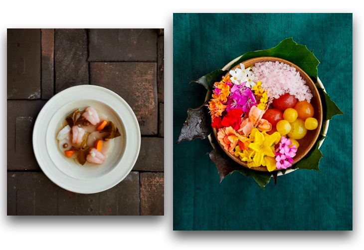 Krem z ziemniaka zamknięty w tymiankowej doniczce, motyl ze skórek owoców siedzący na źdźble lawendy, szparagi podane z szyszkami, małże w szkatułce, to tylko początek tego, co potrafi wymyślić i przygotować team Nomy. Restauracja nie działa przez cały czas, są tygodnie, kiedy kucharze przychodzą jedynie gotować i puszczają wtedy wodze swojej fantazji, tworząc najrozmaitsze fuzje smaków. W Nomie ciągle są wprowadzane zmiany w menu, więc każdy sezon przynosi coś nowego.