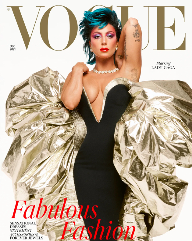 Zaraz po ostanim klapsie, Lady Gaga porzuciła akcent – „to przyszło łatwo, reszta rzeczy była trochę trudniejsza”. Dziś nie ma śladu po roli Patrizii, Gaga na okładce Vogue to gwiazda pop, którą znamy – fantazyjne włosy w odcieniu zieleni, mocny makijaż. Sukienka nawiązuje do włoskiego przepychu lat ’90, duży dekolt i ten błysk złota od którego trudno oderwać wzrok, ale też wpisuje się nie tylko w obowiązujące trendy, ale i modowe DNA Gagi, która przecież kocha eksperymentować z ubraniami.