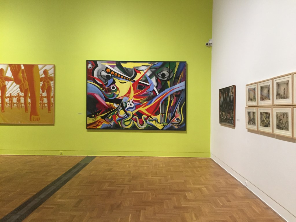 Po raz pierwszy prezentowane są m.in. obrazy tzw. malarzy reportażystów (awangardowych realistów), ujawniających sprzeczności powojennego społeczeństwa japońskiego w stylu realistycznym, dzięki czemu ich polityczne przesłanie było łatwo zrozumiałe. W niespokojnych politycznie latach pięćdziesiątych w różnych ośrodkach powstawały nowatorskie ruchy i grupy artystyczne. Sieć wzajemnych powiązań indywidualności i kolektywnych praktyk pokazują dzieła i dokumenty archiwalne grup takich jak Jikken Kōbō, Demokratyczne Stowarzyszenie Artystów, Stowarzyszenie Artystyczne Gutai, Kyūshū-ha (Szkoła z Kiusiu) czy kolektyw fotograficzny Vivo. Lata sześćdziesiąte przyniosły wiele wybitnych realizacji przedstawicieli starszej generacji, a także zaowocowały twórczością nowego pokolenia, którego radykalne instalacje, akcje i happeningi zmieniły oblicze awangardy japońskiej. Wśród nich wyróżniają się działania m.in. Neo Dada, Zero Jigen, Hi Red Center, The Play, GUN (Grupa Ultra Niigata), Bikyōtō czy Provoke. Manifestujące się na wiele sposobów dążenia do pogodzenia pozornie przeciwstawnych postaw — indywidualizmu z kolektywizmem — okazały się ożywcze dla rozwoju japońskiej sztuki współczesnej. Wystawa prezentuje dzieła, które poprzez poszukiwanie form i strategii wypowiedzi artystycznej adekwatnych do aktualnych czasów, uczyniły Japonię nowym ośrodkiem życia artystycznego.