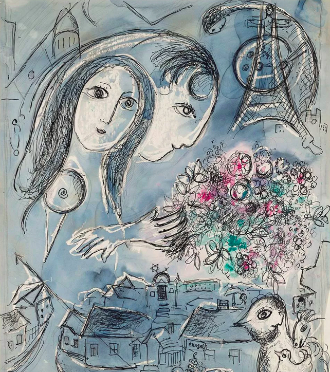 Przełomem był wyjazd do Paryża. To wtedy Chagall zachwycił się kolorami. W Rosji mu ich brakowało, wszystko było w kolorach „butów, które nosiliśmy” – mówił. W Paryżu zmienił nazwisko, wcześniej Mojsze – teraz Marc Chagall. Zamieszkał na Montparnassie, gdzie było wielu artystów, którzy sztuką chcieli zrewolucjonizować świat. Wielu z nich, tak jak Chagall przybyło z zagranicy. Mieszkali w ciasnych pokojach, odkładali na farby i balowali po nocach.