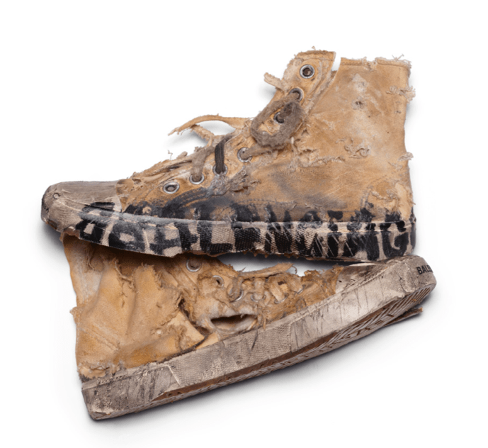 Gvasalia puszcza do nas oko, odkąd zaczął być poważnym graczem na rynku mody, czyli od sukcesu Vetements. I od początku trochę sobie kpi z naszego konsumpcyjnego stylu życia. Zniszczone trampki Balenciagi wyglądają tak okropnie i odrażająco, że trudno się na nie patrzy. Ale marka twierdzi, że to produkt wysokiej jakości i gwarantuje długoletnią trwałość.