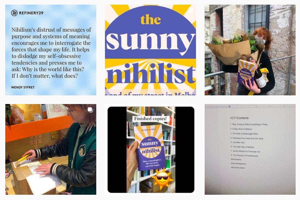 Swoją książkę „Pogodni nihiliści”, która właśnie ukazała się w Polsce, Wendy zaczyna od opowieści o tablicy, którą mijała każdego dnia po drodze do pracy. Na tej tablicy, która należała do sklepu, kiedyś zapisane były przeceny, czy godziny otwarcia. Kiedyś zamiast informacji o sklepie i produktach na tablicy pojawiły się hasła motywacyjne. „Po co przenosić górę skoro można się na nią wspiąć?” „Bądź bohaterem własnej historii.” „Zrób coś wielkiego!” Wendy Syfret zdaje się wzdychać: nawet tablica informacyjna nie może być „zwykłą” tablicą. Musi mieć jakiś sens, być wartościowa. Niech więc motywuje tych biednych ludzi, może z kogoś zrobi bohatera.