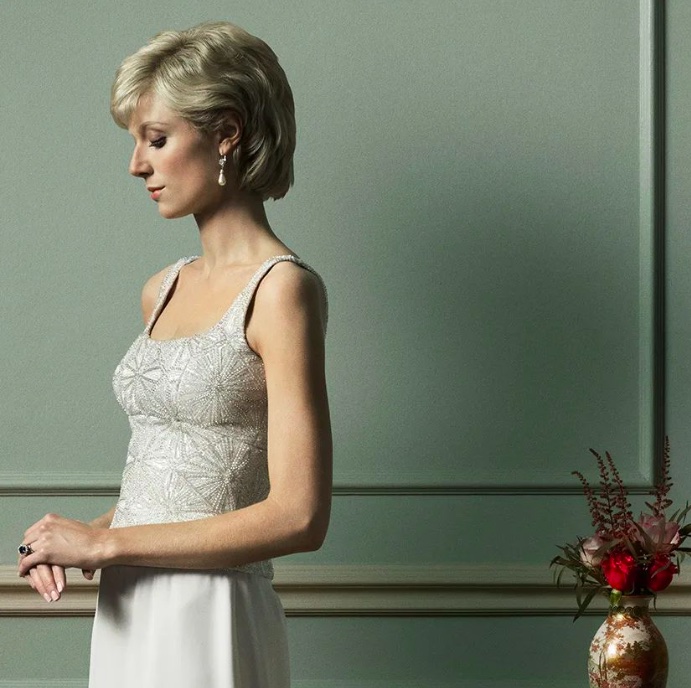 „Czułam presję” – mówi Elizabeth. Niektóre sceny wymagały od niej prawdziwego poświęcenia. Jej znajome pytały czy założy sukienkę, którą Diana miała na sobie w 1994 roku na imprezie w Serpentine Gallery. Przez prasę nazwaną revenge dress, którą Diana złamała etykietę. Tego samego wieczoru Karol publicznie przyznał się do tego, że zdradzał żonę. Elizabeth miała okazję założyć kopię sukienki zaprojektowanej przez Christinę Stambolian. „Starałam się podczas tych scen skupić na ruchu. Diana, kiedy wysiadała z taksówki pod Serpentine szła jak burza, była pewna siebie, pełna mocy. Kiedy otworzyły się drzwi nie czekała” – mówi gwiazda.