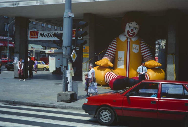 Warszawę w kolorze fotografował nawet Edward Hartwig, który przez większość zawodowej kariery zajmował się fotografią czarno – białą. Mówił wtedy, że musi wyżyć się w kolorze. To na jego zdjęciach siedzi maskotka McDonalds, która wygląda jakby wcisnęła się na siłę w przestrzeń budynku.