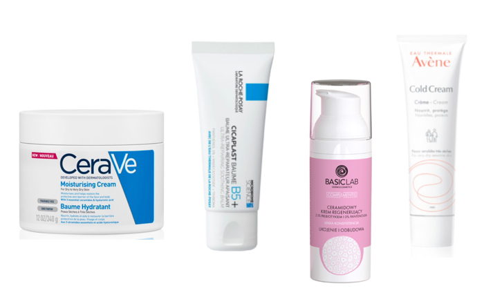 Nawilżający CeraVe/ La Roche – Posty Cicaplast B5/ Ceramidowy krem regenerujący BasicLab/ Avene Cold Cream