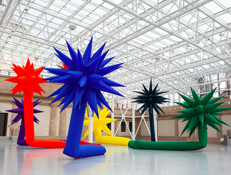 Ten czarny balon był tylko jednym z wielu, jakie w swojej sztuce wykorzystał Otto Piene. Balony o różnych kształtach i w różnych kolorach, po napompowaniu helem tworzyły konstelacje gwiazd zawieszone w powietrzu. Takie gwiazdy stoją dziś w Muzeum Sztuki Współczesnej we Wrocławiu w Pawilonie Czterech Kopuł. Są bardzo fotogeniczne, choć odwiedzający Pawilon kojarzą je różnie, raz według uznania artysty, inna interpretacja to kolorowe palmy. To co się zgadza, to fakt, że przyjemnie pod nimi postać, popatrzeć w niebo przez szkło pawilonu.