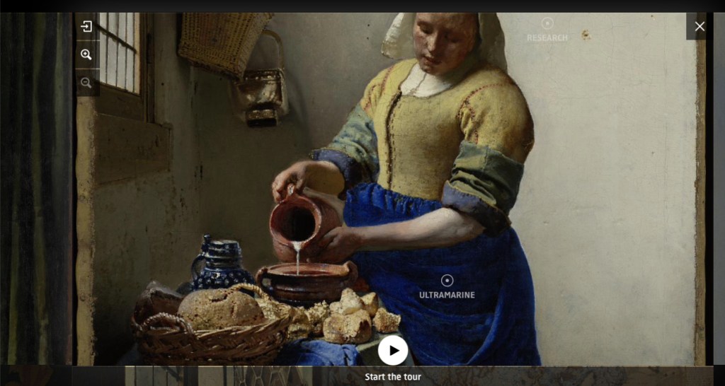 Vermeer zaczynał od dużego płótna, tych prac jest jednak niewiele. Znawcy sztuki zawracają uwagę na warsztat i niedociągnięcia w tych dziełach. Być może dlatego Vermeer zdecydował się malować mniejsze obrazy. Część osób odwiedzających wystawę mówi, że wyglądają one jak znaczki pocztowe umieszone na ścianach. Do „Mleczarki”, która ma 41 x 45 cm trzeba podejść naprawdę blisko, żeby docenić jej piękno.