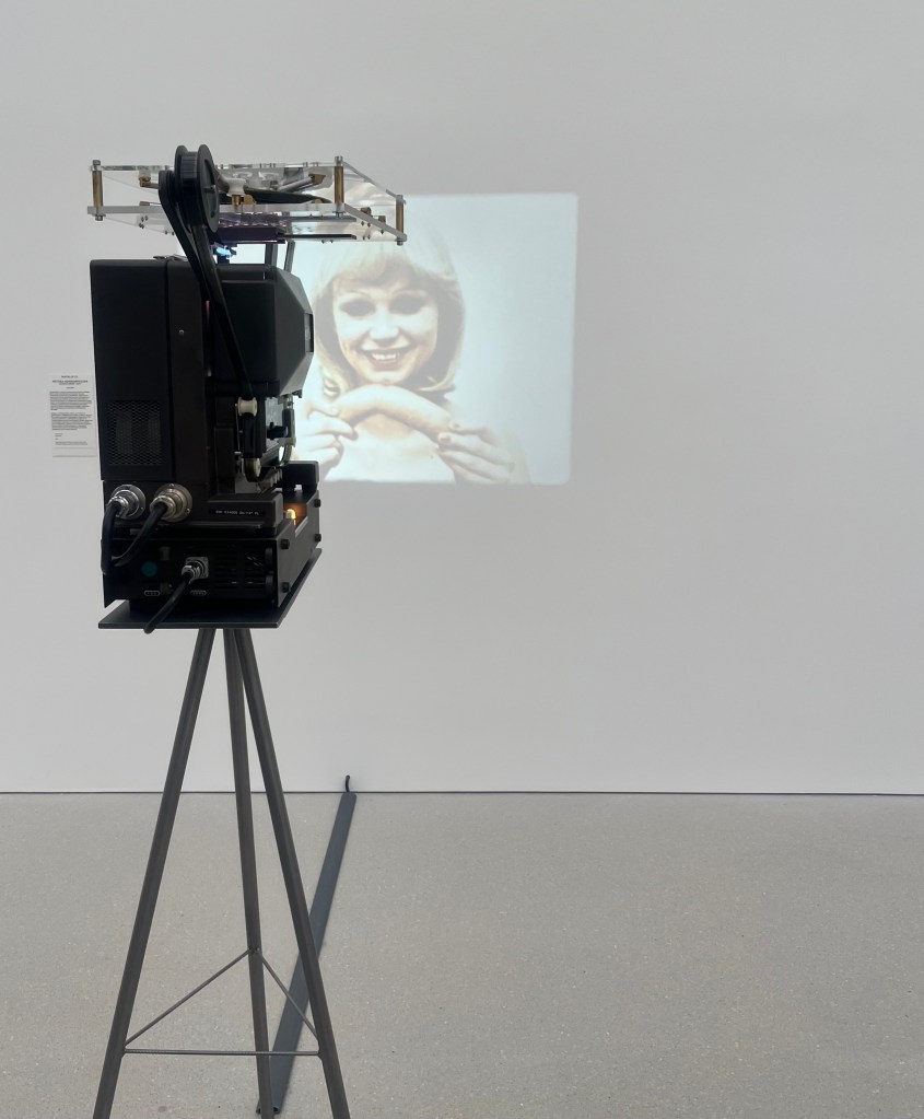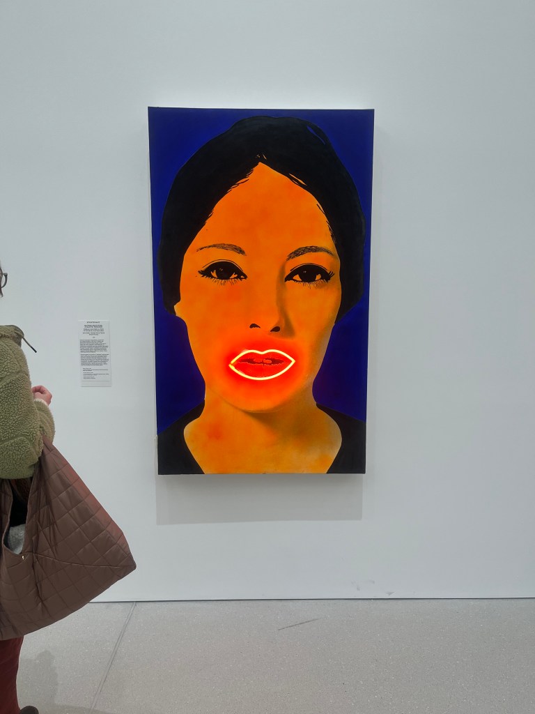 Zatrzymuję się przy obrazie Sturtewant, która od lat ’60 XX wieku duplikowała prace znanych artystów, między innymi Andy’ego Warhol’a, czy Roy’a Lichtenstein’a. Wyprzedziła swoje czasy, poruszając takie zagadnienia jak autorstwo czy oryginalność dzieła. Kobieta o neonowych ustach to kopia Obrazu Pod wysokim Napięciem Martiala Raysse’a z 1965 roku.