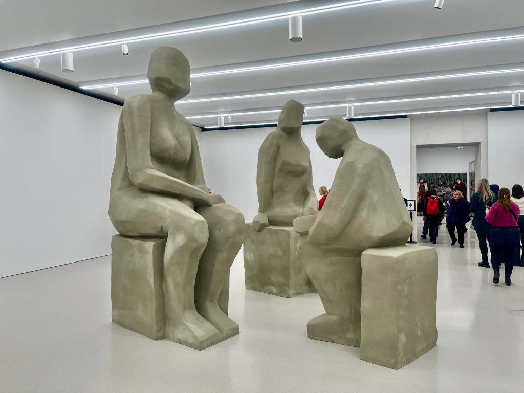 Biel wnętrza MNSu działa kojąco. Sprawia, że łatwiej skupić wzrok na tym, co ważne. Wspinam się po schodach i wiem, że pierwszą rzeźbą jaką zobaczę będzie „Przyjaźń” z 1954 roku Aliny Szapocznikow. To symboliczne dzieło, które kiedyś stało w Pałacu Kultury i Nauki. Na początku lat ’90 postanowiono je zezłomować, ale żeby łatwiej je było wynieść, usunięto ramiona figur i sztandar. W takim stanie dzieło trafiło do przypadkowej lokalizacji, a później cudownie odnalazło się na aukcji, żeby wrócić do kolekcji. Brakujących fragmentów nie udało się odnaleźć, mimo to rzeźba nadal wygląda majestatycznie. Po przyjaźni polsko – rosyjskiej nie zostało wiele więcej niż kamień.