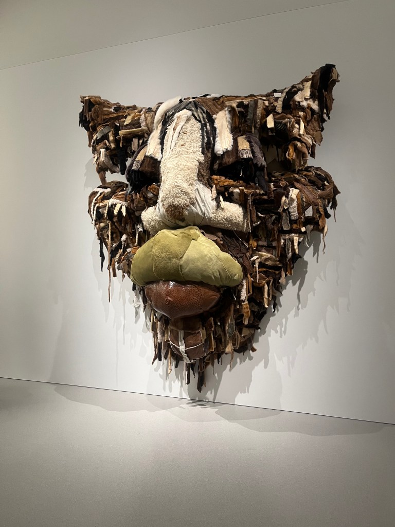 Uwagę przykuwa praca Tau Lewis. Artystka, do stworzenia „Angelus Mortem”, wykorzystała zwierzęce futra, które zostały porzucone przez właścicieli w salonach kuśnierskich Nowego Jorku. Jej dzieło wygląda jak kocia głowa, miękka i puszysta, dopiero kiedy dostrzeże się materiał z którego powstała, zmienia się jej odbiór. Tworząc „Angelus Mortem” Lewis nawiązała do afrykańskiej tradycji ludu Joruba, który zajmuje się wytwarzaniem rękodzieła.