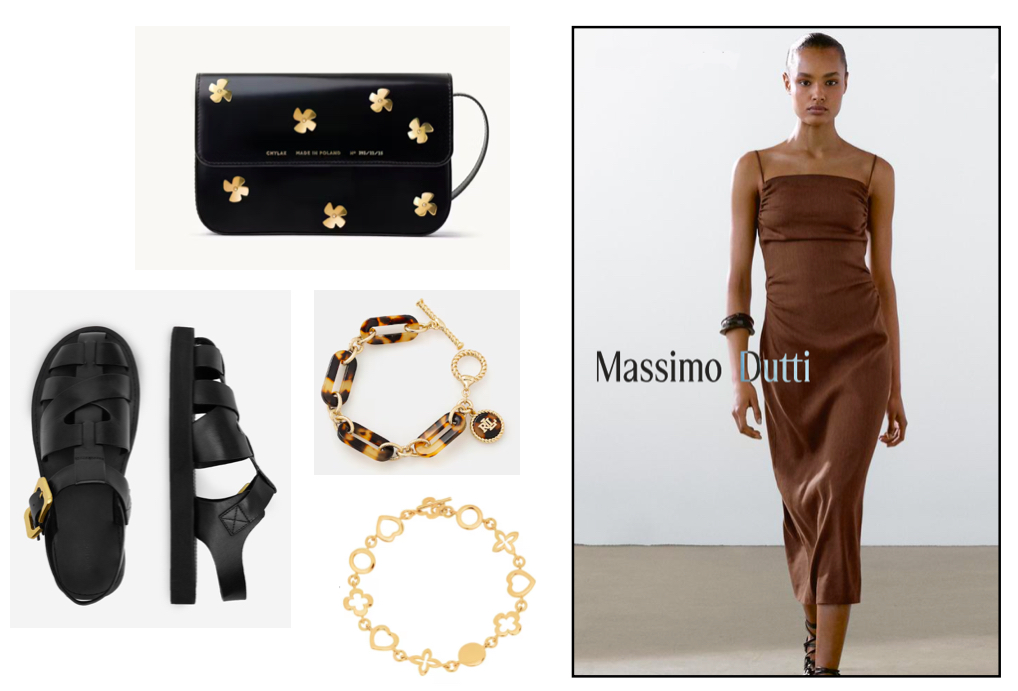 Sukienka, którą dla was wybrałam jest bardzo po ciele, delikatnie marszczona w biuście i w talii, przez co jeszcze lepiej się układa. Ocień brązu przypomina mi mleczną czekoladę, jest delikatny i stonowany. Ta sukienka to ukłon w stronę wygody i naturalnej elegancji. Łatwo możecie ją wystylizować, będzie świetnie wyglądała z małą torebką z nowej kolekcji Zofii Chylak, ale też z koszykiem. Ubierzecie do niej trampki, sandały albo buty na obcasie – pamiętacie te Hego’sy z pierwszej stylizacji?
