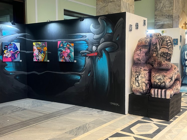 Wystawa zaczyna się od prac Exer’a, jego „Nieistniejących obiektów”. To artysta, który poszukuje optymalnego kształtu form w swoich dziełach. Dalej zobaczcie prace NeSpoon, która tworzy na pograniczu street artu, ceramiki i malarstwa, „Strachy” Sepe, kolorowe oczy które utknęły w ekranie telefonu autorstwa Eskaer’a, baśniowe obrazy Taki Myk, prace Demenz’a… Szczególnie głośno jest o Grupie Twożywo, która od jakiegoś czasu nie pokazywała swoich dzieł, a podczas Urban Art Area możecie zobaczyć kilka z nich – są wyeksponowane na końcu pierwszej sali. Głównym organizatorem jest Galeria Leonarda, a prace pokazywane na wystawie można zakupić, ich ceny są bardzo zróżnicowane. Jeśli Wam się coś spodoba warto zerknąć na cennik i przekonać się ile kosztuje dziś sztuka.